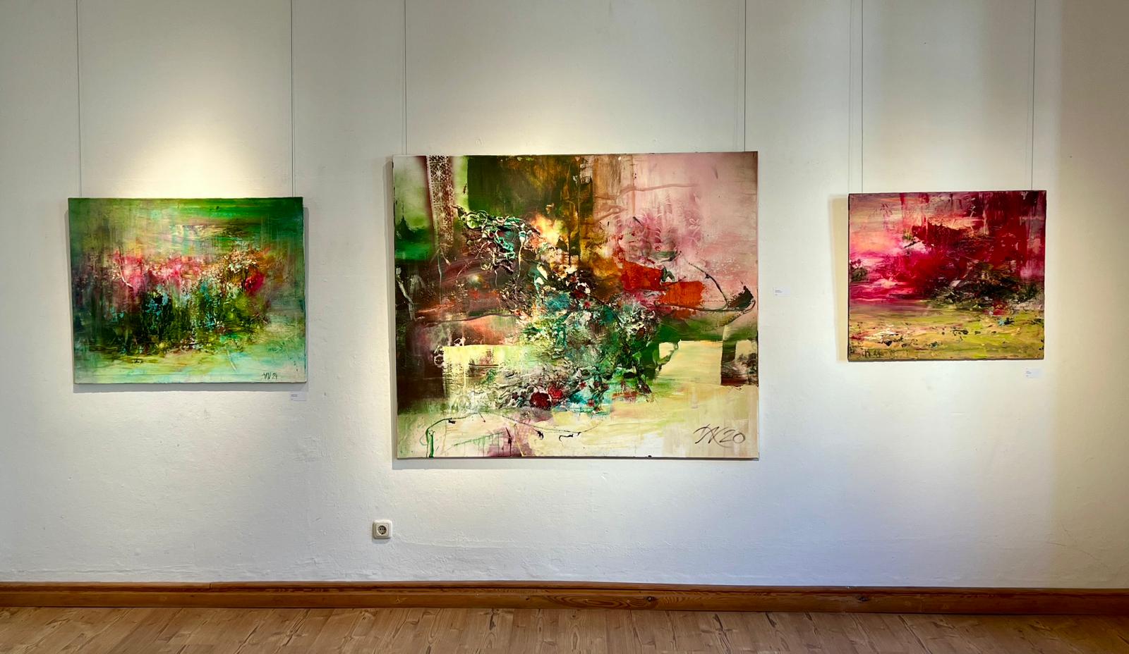 Ihre unglaublich lebendigen Tanzskizzen bereiteten ihr den Weg für ein virtuos berauschendes Spiel mit Bewegung, Licht und Farbe in ihren aktuellen Ölbildern. Weit abstrahierte, sich in pure Form auflösende Malgesten und begeisternd kühne, hoch raffinierte Koloristik beherrschen die Bilder und lassen immer wieder die geniale Zeichnerin erahnen. Dem Betrachter begegnet eine Expressivität, eine Bild gewordene Emotionalität, die immer wieder vehement errungen wird, deren Spuren aber beruhigend nachklingen, wie raumgreifende Wellenkreise auf einer Wasserfläche.