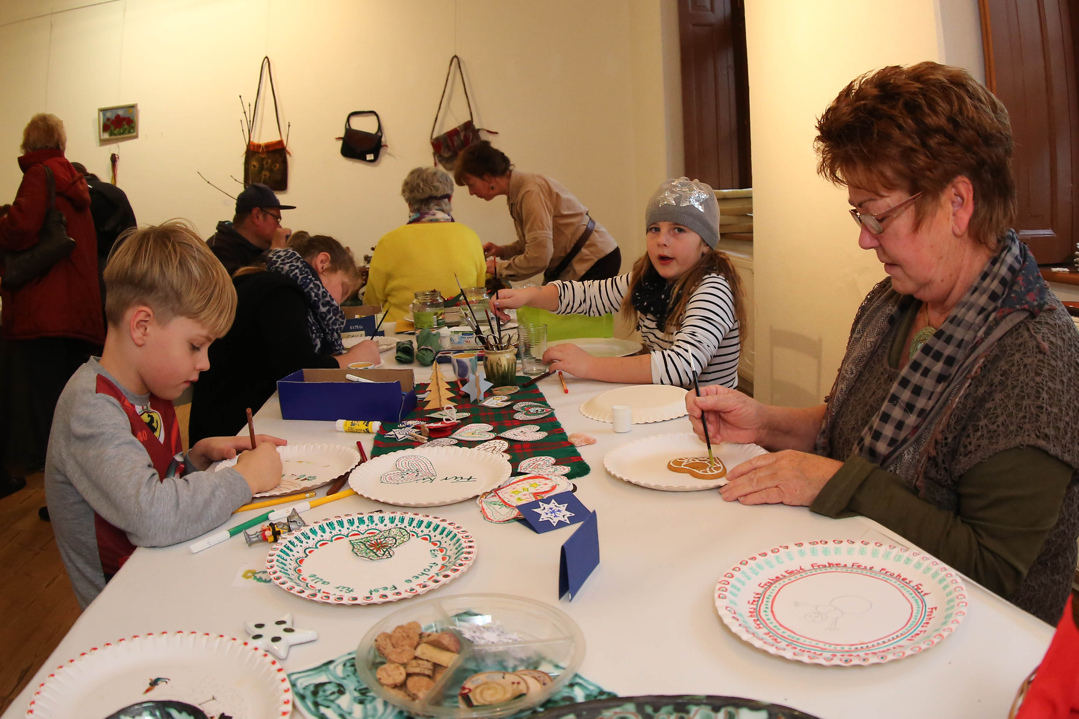 Kleine Marktbesucher können unter Anleitung von Vereinsmitglied Inge Hornburg Weihnachtsgeschenke basteln und um 15 Uhr spielt das Kinder- und Jugendtheater STOLPERDRAHT im Theaterkeller der Galerie mit „Vorfreude – ein kleines Weihnachtsstück“.