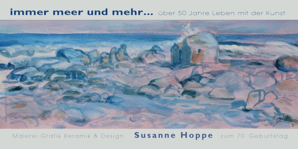 Mit einer Jubiläumsschau endet das Ausstellungsjahr in der Galerie am Kietz des Kunstverein Schwedt e.V., gewidmet ist sie dem langjährigen Vereins- und Gründungsmitglied Susanne Hoppe anlässlich ihres 70.Geburtstages in diesem Jahr. Vom 02.Dezember 2023 bis zum 20. Januar 2024 präsentiert die in Gerswalde freischaffend lebende Künstlerin in beiden Galerieteilen ihre Arbeiten.