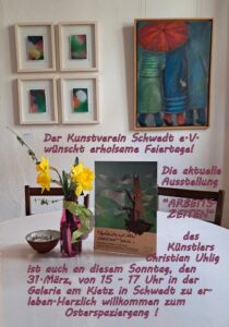 KINDERKUNSTWORKSHOP in der Galerie am Kietz unter der Anleitung von Annett Wagner. Für Kinder im Alter von 7 bis 11 Jahren bietet der Kunstverein Schwedt e.V. in den Herbstferien einen Kunstworkshop unter der künstlerischen Anleitung von Annett Wagner an. Durchgeführt wird das Projekt in der Galerie am Kietz des Kunstverein Schwedt e.V., Gerberstraße 2 in …
